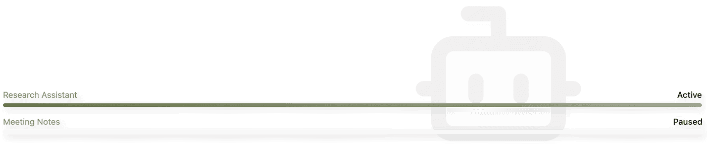 Alle aktiven Agenten, Workflows und KI-Modelle an einem Ort. Wissen, was im Einsatz ist, was pausiert und was Geld kostet.