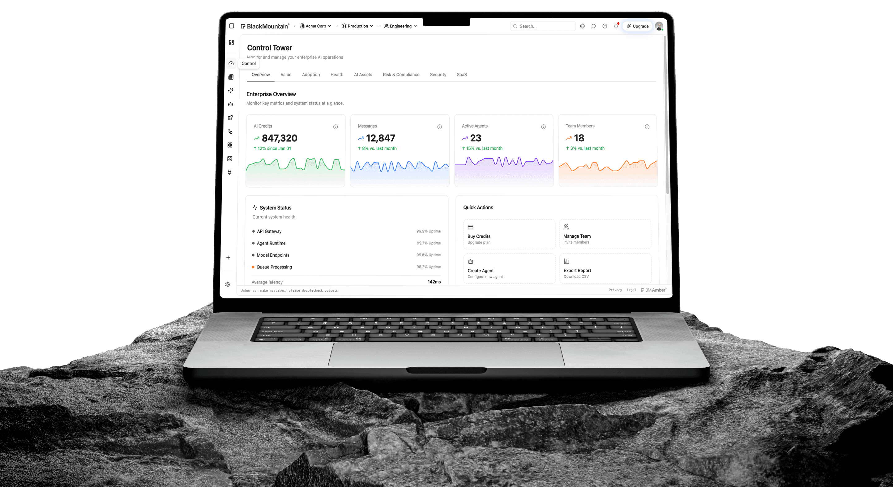 Der Control Tower gibt Führungskräften einen zentralen Überblick über alle KI-Assets, die Nutzung in Teams, den Sicherheitsstatus und ihre Software-Abonnements. Erkennen Sie Ineffizienzen sofort und senken Sie gezielt Kosten.